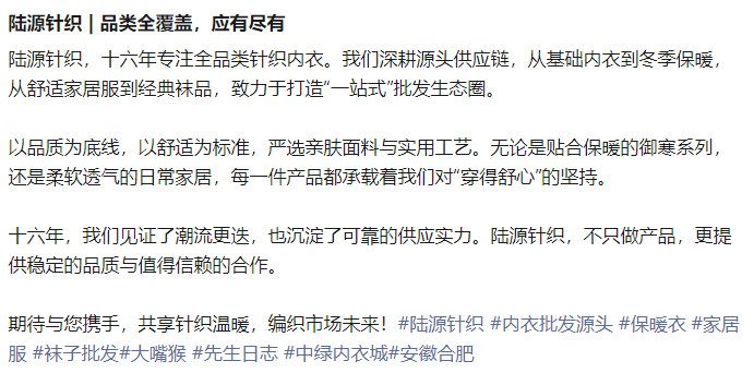 上一篇:卢家针织 | 全品类内衣批发,一站式选品